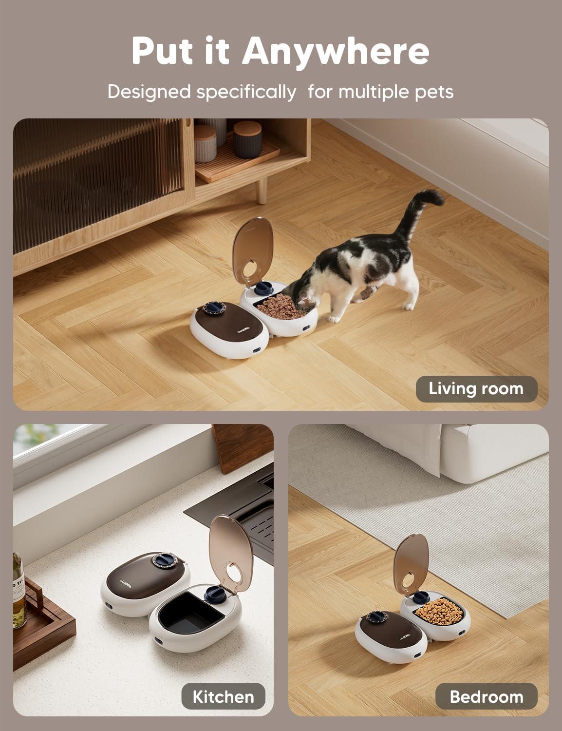Easy-to-Program Timer: You can set the feeding time ahead 48-hour. Just count the hours until mealtime (e.g., set “3” hours if it's 6 AM and feeding time is 9 AM). Flip the front lock switch to “Planned Open” and you're all set! The lid pops open automatically when it's time to eat—so you never miss a meal.